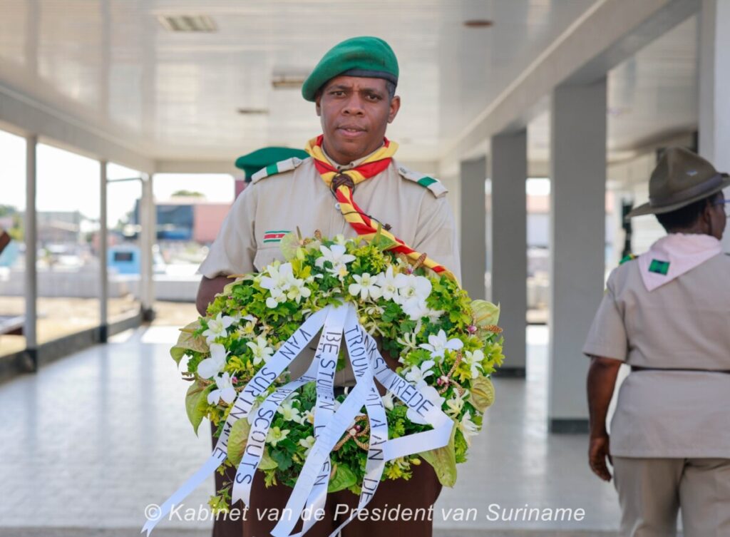 President Santokhi, ook Chief Scout, werd vanwege zijn aanwezigheid bij een Caricom staatshoofden-vergadering op Grenada, vertegenwoordigd door minister Steven Mac Andrew van Arbeid, Werkgelegeheid en Jeugdzaken.