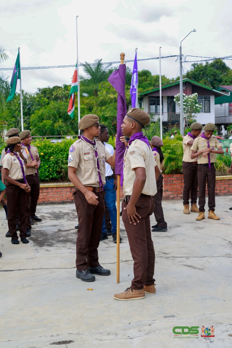 President Santokhi, ook Chief Scout, werd vanwege zijn aanwezigheid bij een Caricom staatshoofden-vergadering op Grenada, vertegenwoordigd door minister Steven Mac Andrew van Arbeid, Werkgelegeheid en Jeugdzaken.