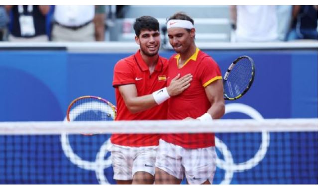 PARIJS — Rafael Nadal en Carlos Alcaraz hebben de kwartfinales van het Olympisch dubbelspel bereikt. Het Spaanse duo versloeg de Nederlanders Tallon Griekspoor en Wesley Koolhof met 6-4, 6-7 (2), 10-2. Alcaraz uitte zijn opwinding over het samen spelen met Nadal, en benadrukte dat dit een droom was die uitkwam.