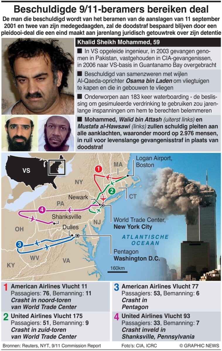 1 augustus 2024 – De man die ervan wordt beschuldigd de aanslagen van 11 september 2001 te hebben beraamd, en twee van zijn medeverdachten, zullen de doodstraf bespaard blijven als onderdeel van een schikking die erop gericht is een einde te maken aan jaren van juridisch getouwtrek over zijn detentie.