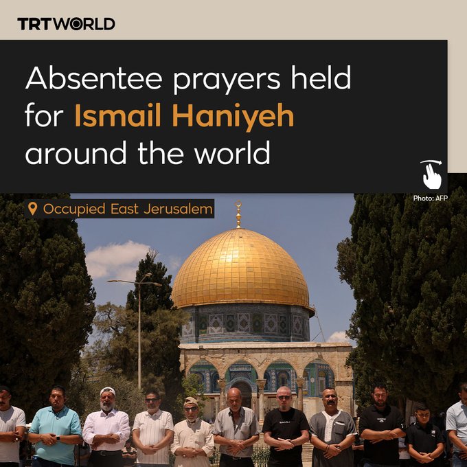 Rouwenden over de hele wereld woonden afwezige begrafenisgebeden bij voor de vermoorde politieke leider van Hamas Ismail Haniyeh, die op 31 juli door Israël werd vermoord.
