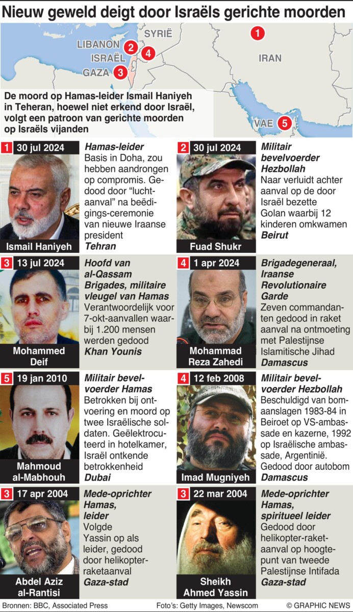 1 augustus 2024 – De moord op Hamas-leider Ismail Haniyeh in Teheran, hoewel niet erkend door Israël, volgt een patroon van gerichte moorden op zijn vijanden.