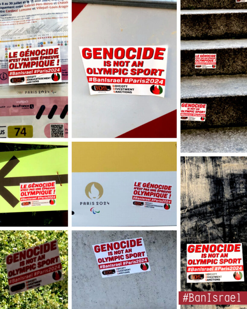 Pro-Palestijnse activisten hesen Palestijnse vlaggen en toonden borden ter veroordeling van de aanhoudende Israëlische acties in Gaza tijdens de Olympische Spelen in Parijs. Zij protesteerden tegen de deelname van Israël aan het evenement, waarbij ze de situatie in Gaza als genocide bestempelden. De demonstratie was gericht op het vestigen van internationale aandacht op het conflict en roepen op tot actie tegen de Israëlische militaire operaties in het Palestijnse gebied.