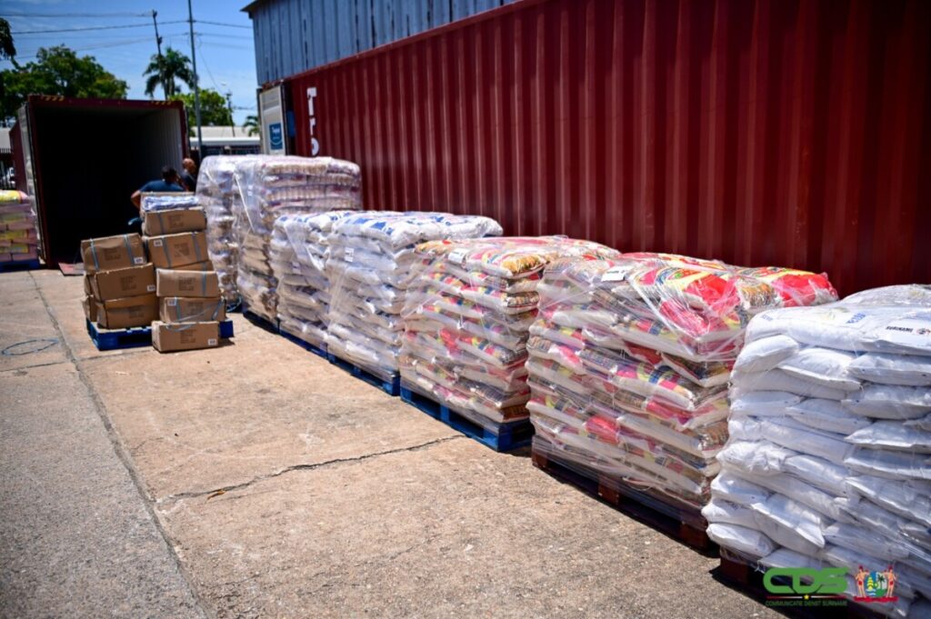 Suriname zal twee containers van 40 voet met goederen doneren. Het totaalvolume bedraagt 13 ton per land, die zullen worden verscheept naar de eilanden. “We gaan rijst, blom, pasta en trampolines versturen op hun verzoek”, meldt kolonel Jerry Slijngard van het NCCR.