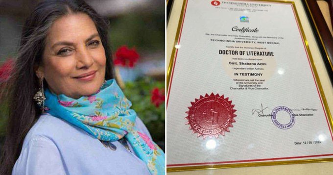 Legendarische Bollywood-actrice Shabana Azmi heeft een eredoctoraat in de literatuur gekregen van Techno India University in Kolkata, haar zesde eredoctoraat.