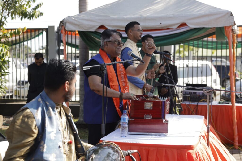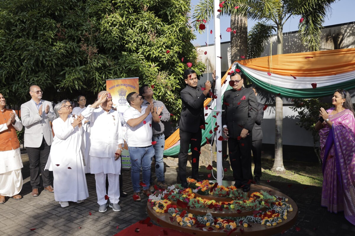 De vieringen begonnen met het hijsen van de Indiase vlag door de aangewezen