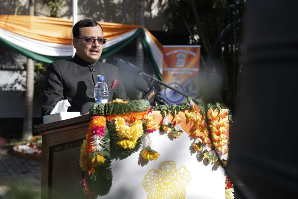 ambassadeur Subhash P. Gupta, gevolgd door het volkslied en het voorlezen van de