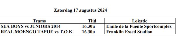 Wijziging in het speelschema van de Eerste Divisie Amateur Competitie 2024. Geplaatst op augustus 16, 2024augustus 16, 2024 De gewijzigde speeltijden en lokatie zijn als volgt: Bericht navigatie VorigeOproep tot vreedzaam protest tegen geweld in BangladeshVolgende15-jarige steelt geld op boerderij van zijn werkgever