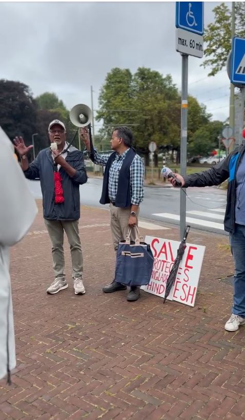 Op vrijdag verzamelde Een groep mensen, niet alleen hindoes, verzamelde zich vandaag, vrijdag 16 augustus, zich in Nederland om samen met mensen uit diverse gezinnen te protesteren tegen het geweld in Bangladesh. Namens de Hindoeraad Nederland sprak Dowlatram Ramlal de menigte toe.