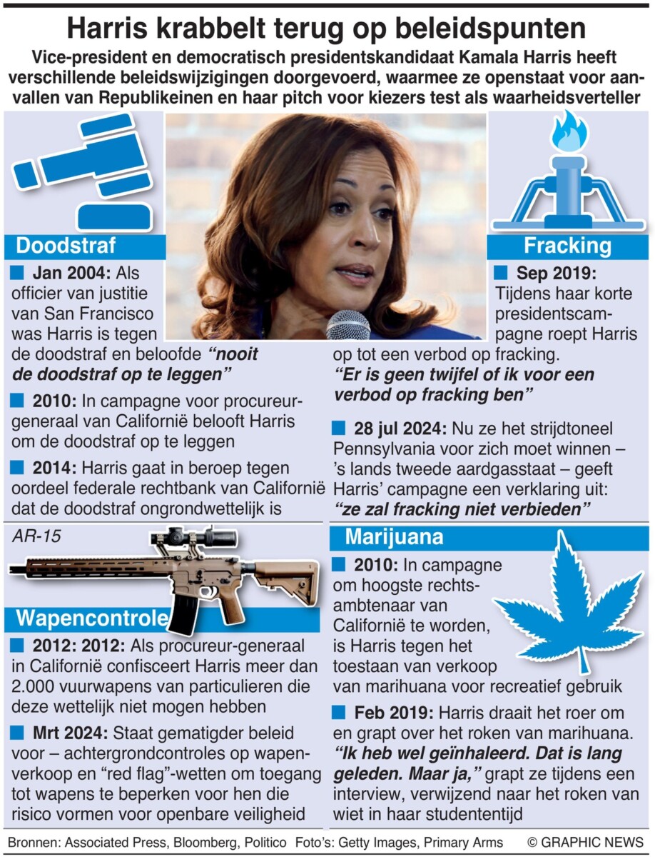 19 augustus 2024 – Vicepresident en Democratische presidentskandidaat Kamala Harris heeft verschillende beleidswijzigingen doorgevoerd, waardoor ze kwetsbaar is geworden voor aanvallen van Republikeinen en haar toon als waarheidsverteller aan kiezers op de proef is gesteld.