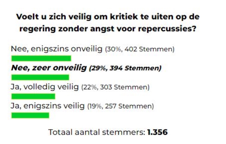 Dagblad Suriname voerde een web peiling uit met de vraag: “Voelt u zich veilig om kritiek te uiten op de regering zonder angst voor repercussies?” De resultaten zijn onthullend: