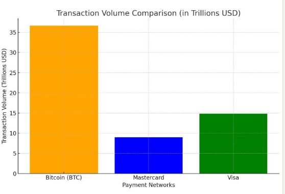 #Bitcoin verwerkte $36,6 BILJOEN aan transacties in 2023.Dat is meer dan het DUBBELE van MasterCard + Visa samen.Bron: Bitcoin-archief