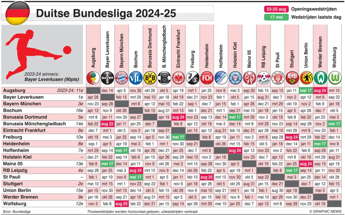 Bayer Leverkusen begon het Bundesliga-seizoen met een spannende 3-2 overwinning op Borussia Moenchengladbach. Florian Wirtz scoorde in de 11e minuut van de blessuretijd na een gemiste strafschop, waardoor Leverkusen drie punten veiligstelde. Granit Xhaka prees de “pure mentaliteit” van zijn team. Wirtz en Xhaka brachten Leverkusen aanvankelijk op voorsprong, maar Gladbach kwam terug met goals van Nico Elvedi en Tim Kleindienst. Wirtz herstelde uiteindelijk de stand met een rebound na zijn gemiste penalty, waarmee het titelverdedigingsseizoen van Leverkusen succesvol begon.
