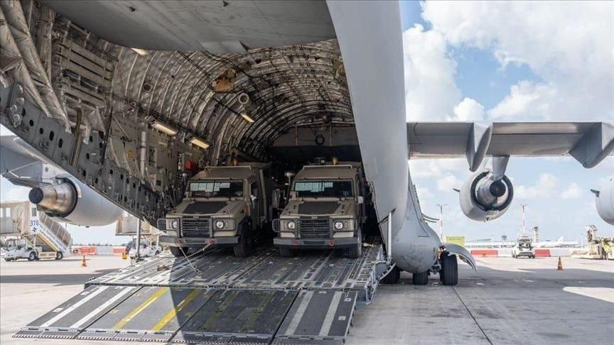 De uitrusting omvat pantservoertuigen, munitie en medische benodigdheden.
