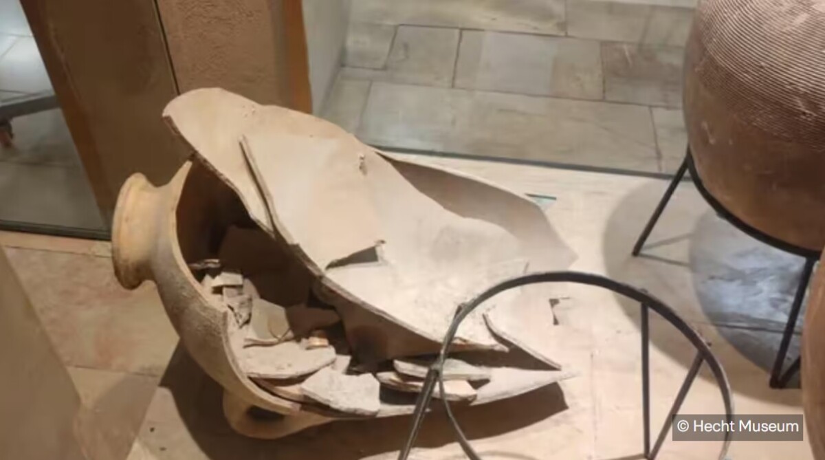 De 3.500 jaar oude kruik stond in het Hecht Museum, dat gespecialiseerd is in de archeologie van Israël. Het voorwerp stond niet achter glas. Een woordvoerder van het museum liet aan de BBC weten dat het voor bezoekers ‘extra speciaal’ is om de archeologische vondsten zonder vitrine te kunnen bekijken.