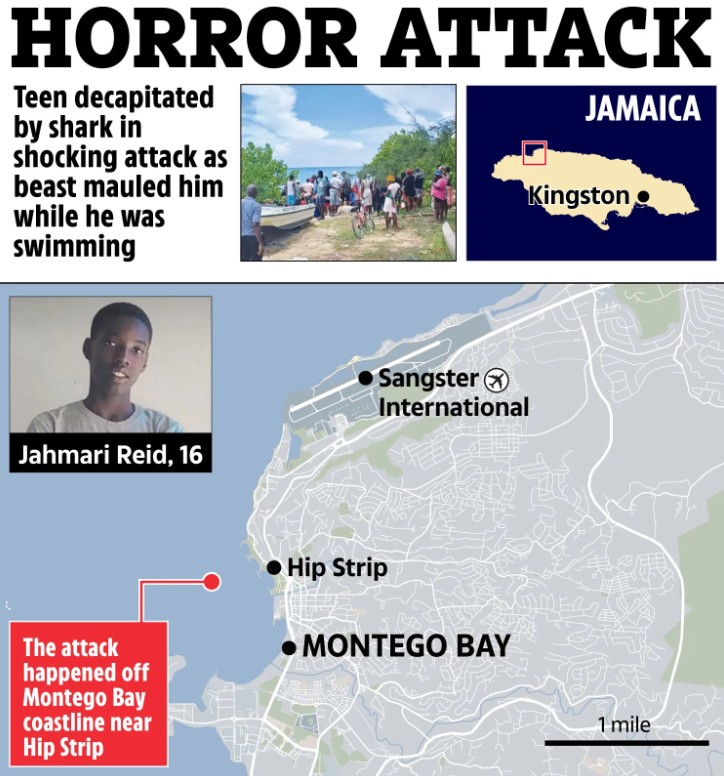 Naast het hoofd ontbrak ook de linkerarm van de jongen. De rest van zijn lichaam was ernstig verminkt, vertellen getuigen aan de Jamaica Observer. Later werd er een haai gespot in de buurt van de plek van de afgehakte arm. Reddingsteams vermoeden daarom dat dat dier de boosdoener is.