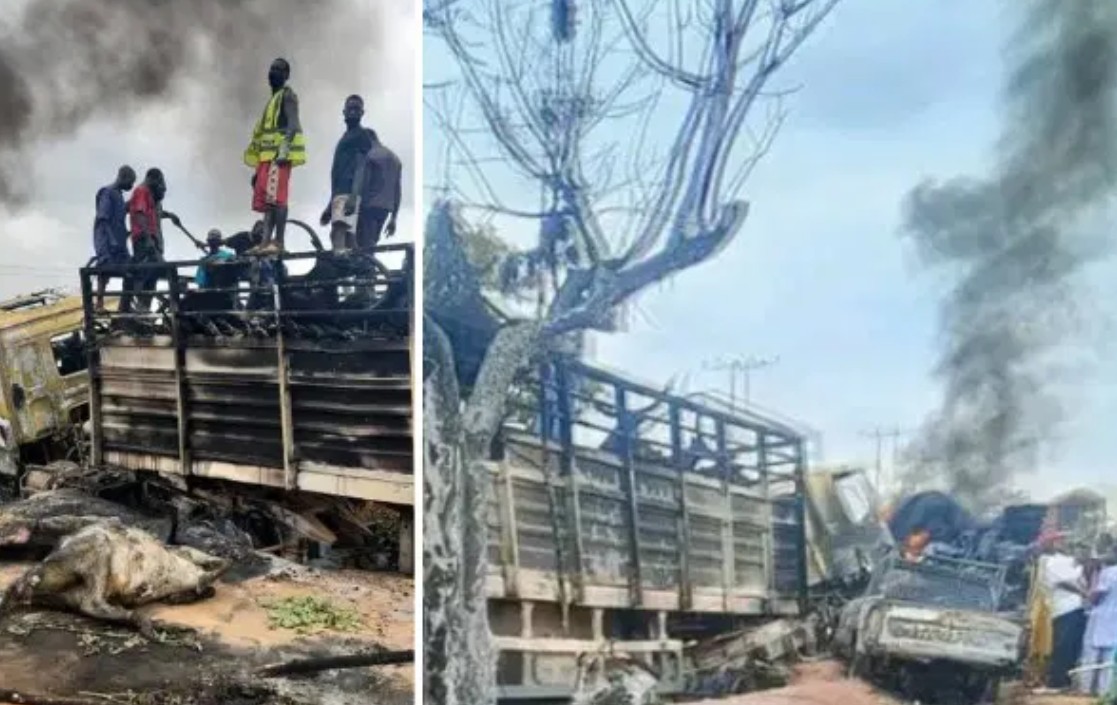 Volgens persbureau Reuters en Nigeriaanse media zijn er 48 doden gevallen. Bij het incident op de weg naar Lagos was onder meer een vrachtwagen betrokken die mensen en vee vervoerde. Daardoor zouden zo’n vijftig koeien zijn verbrand, meldt de Nigeriaanse nieuwssite Vanguard News. Ook waren twee andere auto’s en een pick-uptruck betrokken.