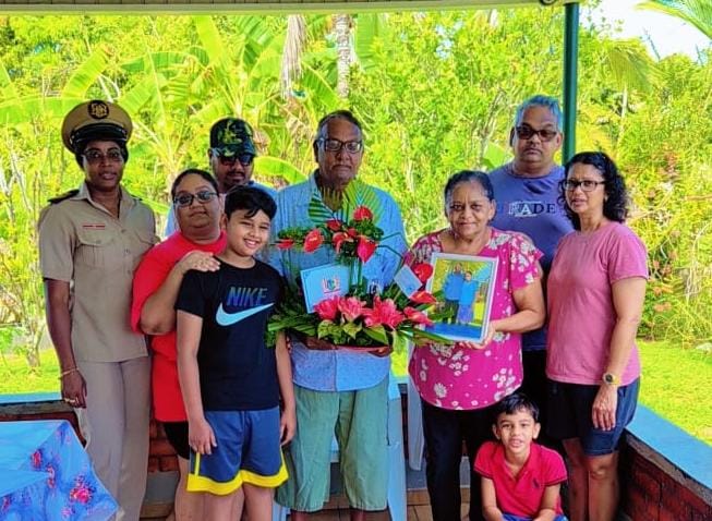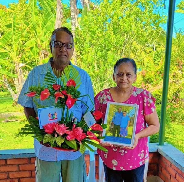 Als geloofsovertuiging belijdt het echtpaar het hindoe geloof en is lid van de Shri Ram mandir. De felicitaties zijn overgebracht door de regeringsvertegenwoordigers en zij mochten een bloemstuk, een felicitatiekaart en een ingelijste foto in ontvangst nemen. De middelen die gepaard gaan bij zo’n mijlpaal worden overgemaakt op een bankrekening van het echtpaar.