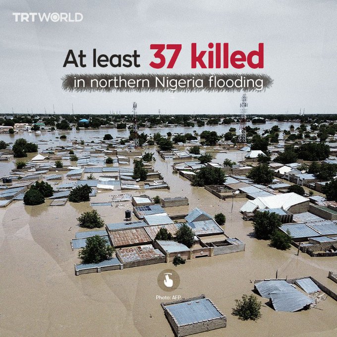 Verwoestende overstromingen in Maiduguri, Nigeria, hebben minstens 37 mensen gedood, 400.000 ontheemd en een kwart van de stad onder water gezet. Reddingsacties gaan door ondanks de angst voor door water overgedragen ziekten en beschadigde infrastructuur. Deze ramp is de ergste die Nigeria in decennia heeft getroffen.