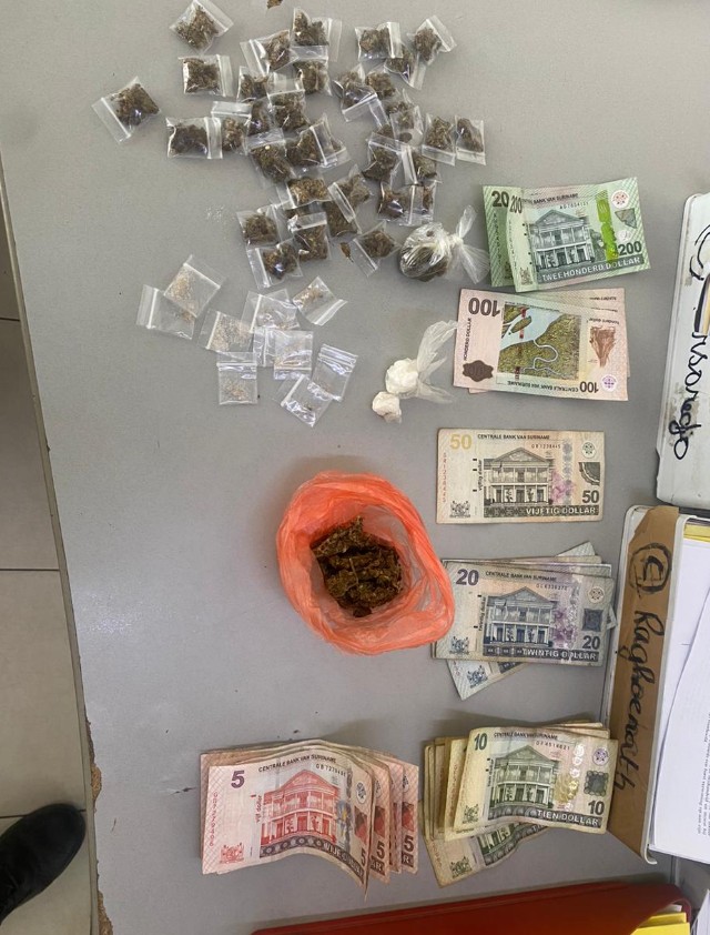 Op hem werden aangetroffen en in beslag genomen een hoeveelheid crack cocaïne, hasj, sukru, marihuana, verpakkingsmateriaal en een geldbedrag in SRD.