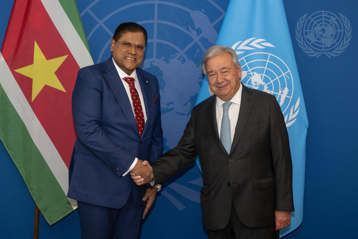 In de marge van de Algemene Vergadering van de Verenigde Naties heeft president Chandrikapersad Santokhi zaterdag een bilaterale ontmoeting gehad met de secretaris-generaal van de Verenigde Naties, António Guterres, op het VN-hoofdkwartier in New York.