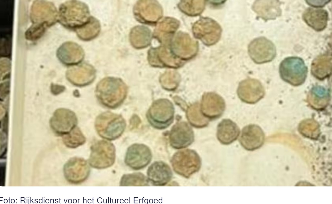 De voornamelijk bronzen munten komen uit de laatste periode dat de Romeinen aanwezig waren in het gebied dat we nu kennen als Nederland, zegt de woordvoerder van de erfgoeddienst.