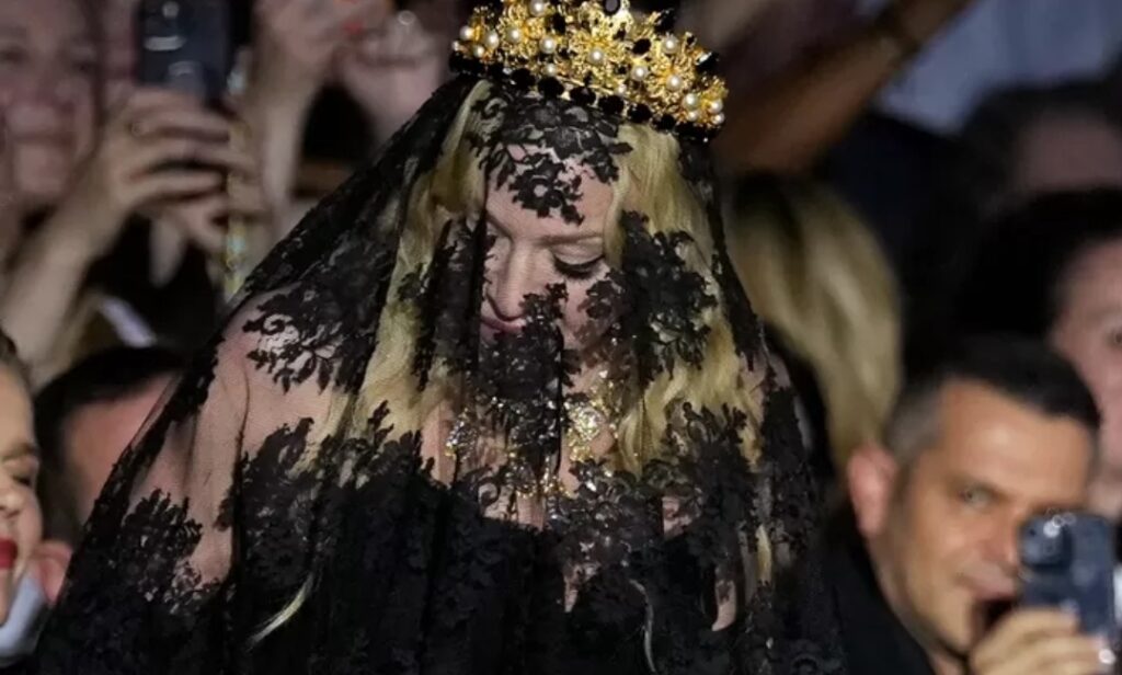 De Queen of Pop verscheen bij de Dolce & Gabbana-show en wist meteen alle ogen op zich te richten, ze kreeg zelfs een staande ovatie. Gekleed van haar hoofd tot haar knieën in een kanten, zwarte sluier weet Madonna de toon meteen te zetten. Onder de sluier droeg ze een nauwsluitende doorzichtige jurk met een korset en hoge laarzen.