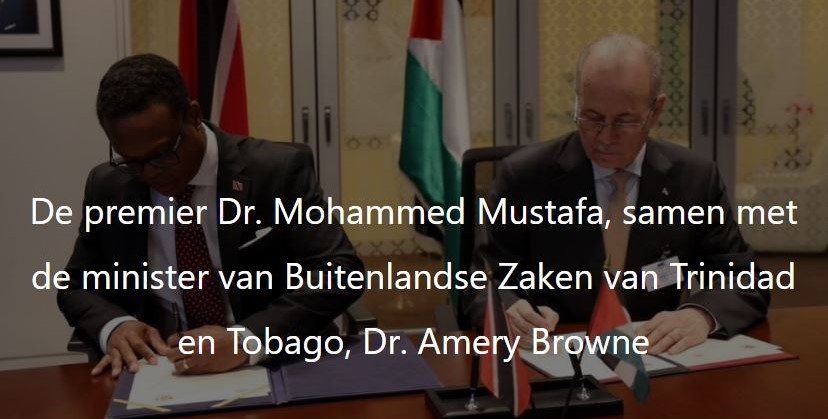 In de marge van de 79e zitting van de Algemene Vergadering van de VN hebben de Palestijnse premier dr. Mohammed Mustafa en de minister van Buitenlandse Zaken van Trinidad en Tobago, dr. Amery Browne, een gezamenlijke verklaring ondertekend om diplomatieke betrekkingen tussen de staat Palestina en de Republiek Trinidad en Tobago te bevorderen. Dit initiatief richt zich op het ontwikkelen van vriendschapsbanden en samenwerking op gebieden van gemeenschappelijk belang.