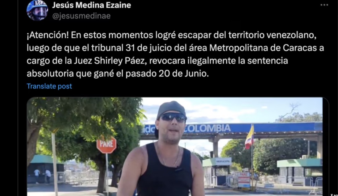 Nadat Medina was vrijgesproken, zei hij echter dat de regering had bevolen dat hij een nieuw proces moest ondergaan. Hij ontkende alle aanklachten. Op dat moment besloot hij dat hij zijn land, zijn vriendin en familie achter zich moest laten. Medina arriveerde op 15 september in Bogota, Colombia, om een nieuw leven te beginnen. Hij is momenteel op zoek naar werk en een permanente woonplaats.