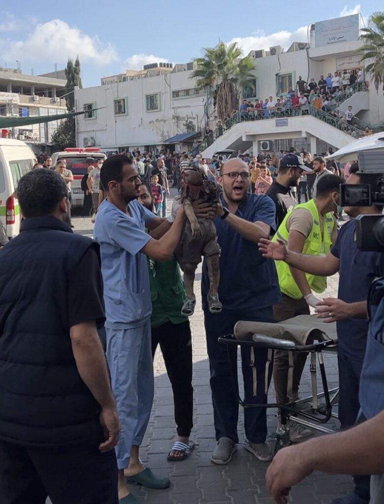 Een Palestijnse man treurt om het verlies van zijn vrouw die omkwam bij een Israëlische luchtaanval in de noordelijke Gazastrook.