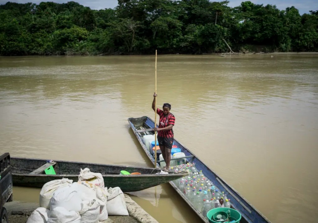 Sediment en kiezels zijn het enige dat nog over is op de aarde rond een groot deel van Bernardino Mosquera’s kleine riviergemeenschap in de Choco-regio in het noordwesten van Colombia.
