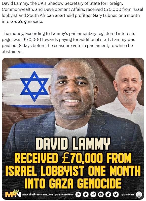 £ 70.000 van de Israëlische lobbyist Gary Lubner.