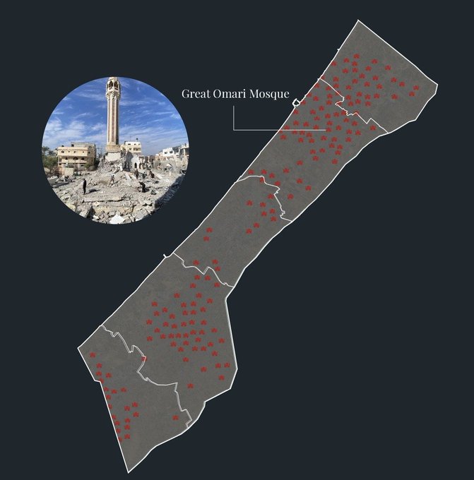 Tragisch genoeg werd de Grote Moskee in december 2023 vrijwel verwoest door een Israëlische luchtaanval, waarbij een groot deel van de historische structuur in puin werd gelegd. De luchtaanval volgde op valse beschuldigingen dat Hamas militaire infrastructuur in de moskee had ingebouwd, hoewel het verlies veel verder gaat dan dat van een gebouw. De vernietiging wist een cultureel, religieus en historisch symbool uit dat lange tijd het leven van de inwoners van Gaza had verankerd. De instorting markeert niet alleen een materieel verlies, maar ook een klap voor de geest van een volk wiens geschiedenis en veerkracht verbonden waren met deze heilige plek.