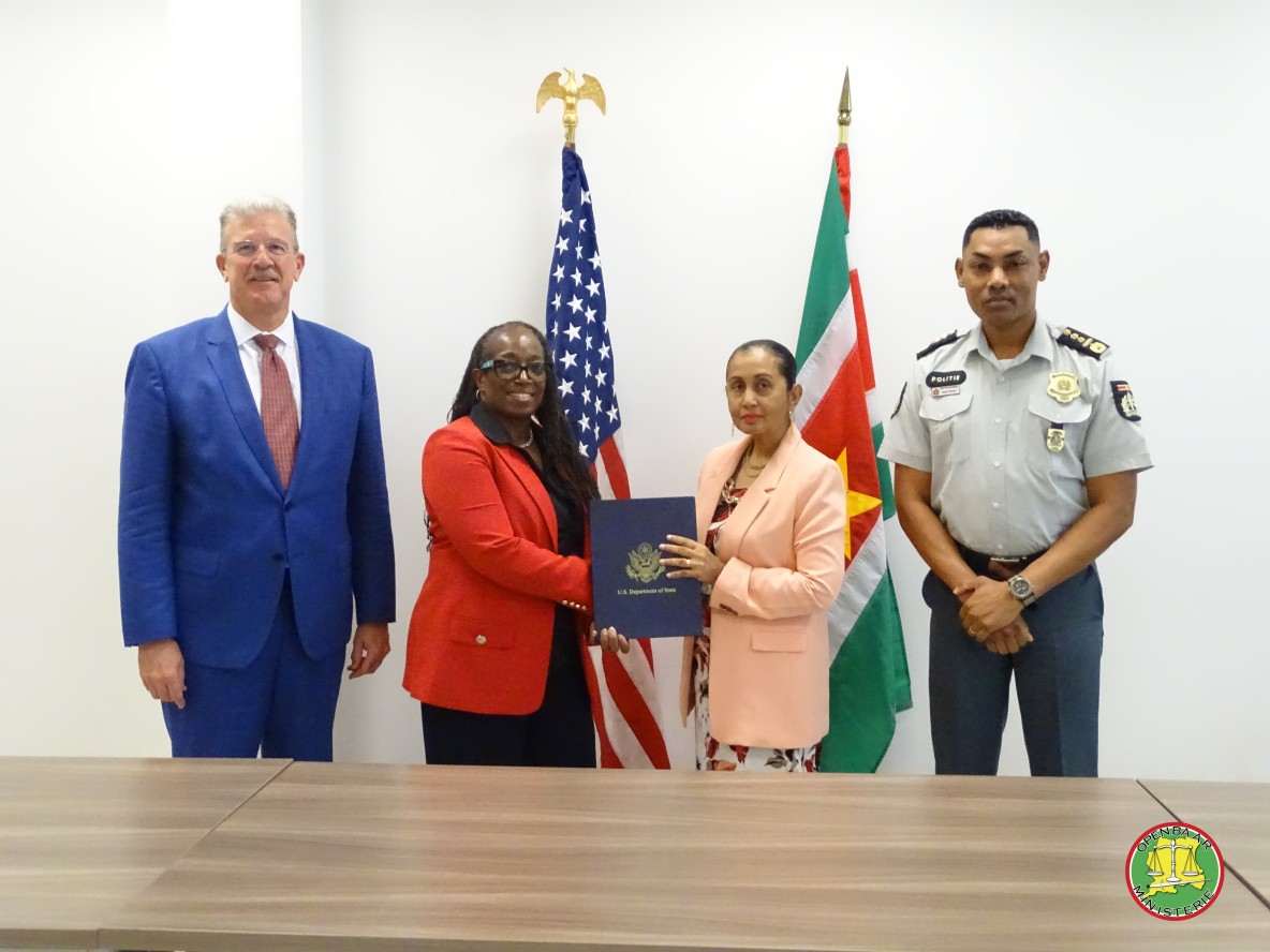 De MoU werd ondertekend door Renita Foster van de U.S. Drug Enforcement Administration en proucureur-generaal mr. Garcia Paragsingh.