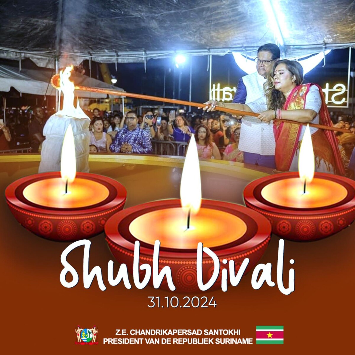 Moge uw Divali gevuld zijn met hetzelfde gevoel van ontzag en verwondering wat u elke dag inspireert. Mede namens de First Lady wens ik u allen een stralende Divali vol hoop en vreugde toe.