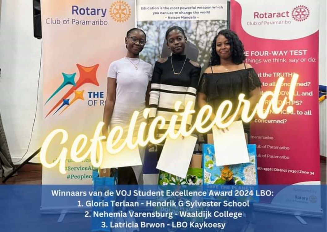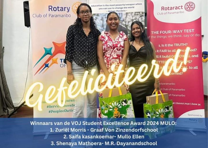 Dit jaar werd voor de 20e keer de VOJ Student Excellence Award uitgereikt op woensdag 30 oktober. Deze prestigieuze ceremonie, in 2005 gelanceerd door de Rotary Club of Paramaribo, is bedoeld om de best geslaagden leerlingen in de eindexamenklassen van de VOJ-scholen (MULO en LBO) in Suriname te erkennen.