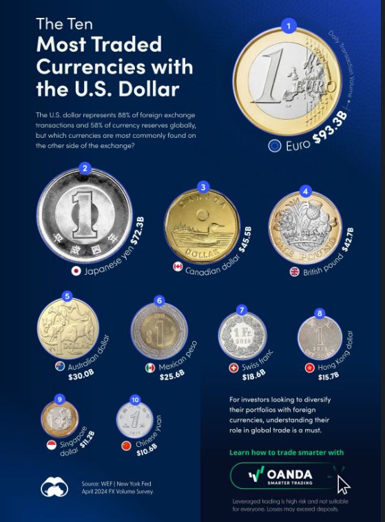 Hier analyseert onze partner OANDA de meest verhandelde valuta’s naast de USD, die betrokken is bij 88% van alle wereldwijde FX-transacties.