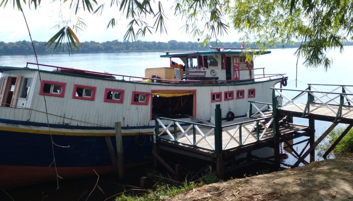 ‘Blue Boat’, een van de belangrijkste boten die de route Apoera-Nieuw Nickerie onderhouden, is vrijdagavond rond achtuur gezonken nabij de monding van de Nickerierivier. De boot zou vastzitten op een zandbank. Na een motorstoring zou de passagiersboot water hebben gemaakt waarop het is gezonken.