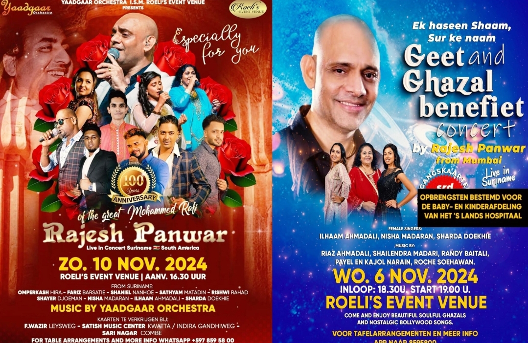 Speciaal voor deze shows, Ghazals en Mohammed Rafi, zal Rajesh Panwar – een zeer begaafde zanger met een hartverwarmende stem – uit Mumbai optreden, naast de bekende Surinaamse zangers en zangeressen Omperkash Hira, Fariz Barsatie, Sathyam Matadin, Shayer Djoeman, Shaniel Nanhoe, Rishwi Rahat, Ilhaam Ahmadali, Nisha Madaran en Sharda Doekhie.