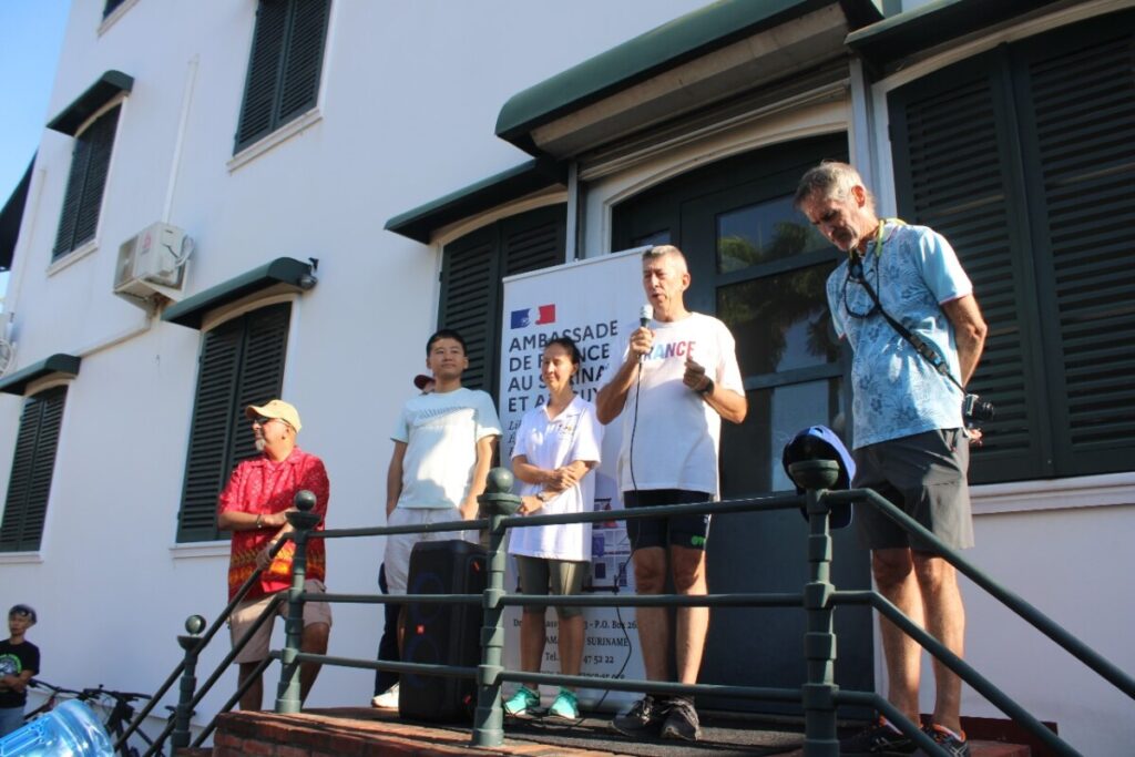 De fietstocht, onderdeel van de ‘French Days’, begon bij de Franse ambassade en voerde langs ambassades van Guyana, Nederland, China en de Verenigde Staten. De rit eindigde bij het Surinaams Olympisch Comité met hapjes en drankjes.