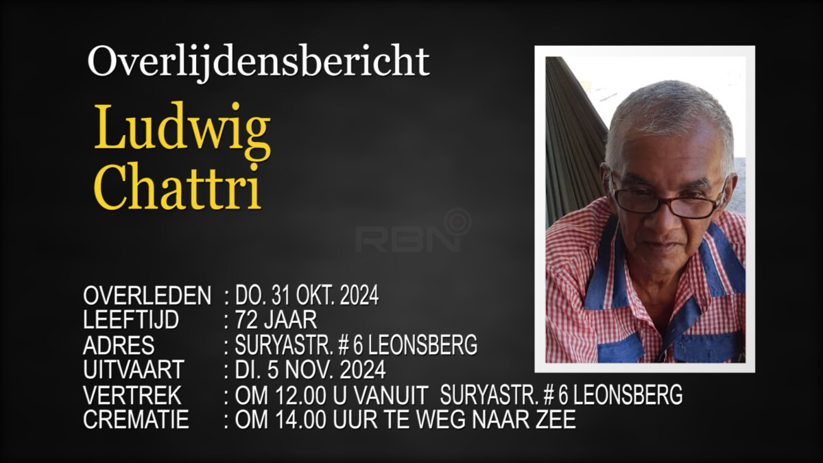 Overlijdensbericht Geplaatst op november 4, 2024november 4, 2024 Bericht navigatie VorigeVoetgangster (57) overlijdt in AZP na te zijn aangereden door busVolgendeFaizel Pinas Kroon tot Mr. Suriname 2024
