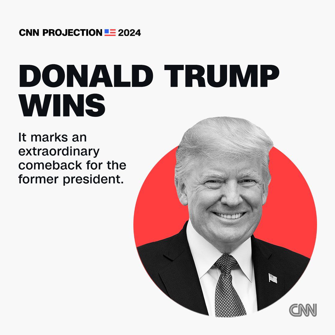 Donald Trump is herkozen als president van de Verenigde Staten, waarmee hij de 47ste president wordt. Hij behaalde de benodigde 270 kiesmannen, ondanks dat nog niet alle stemmen zijn geteld. In de swing states, zoals Georgia, North Carolina en Pennsylvania, behaalde Trump cruciale overwinningen.