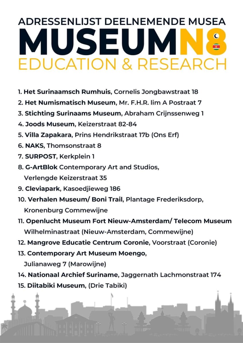 De Museumnacht in Suriname is een jaarlijks evenement waarbij diverse musea in het land hun deuren openen voor het publiek, vaak tot laat in de avond. Dit jaar vindt Museumnacht vandaag, zaterdag 9 november, plaats met aanvullende activiteiten ook op zondag 10 november. Bezoekers kunnen rekenen op een bijzondere ervaring, met meer dan 15 musea die deelnemen aan het programma. Daarnaast zijn er enkele unieke tours beschikbaar, zoals de Heritage Tour door Coronie, die inmiddels volledig volgeboekt is.