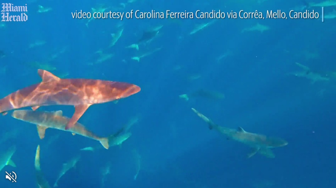 Honderden haaien verzamelden zich op mysterieuze wijze voor de kust van Brazilië