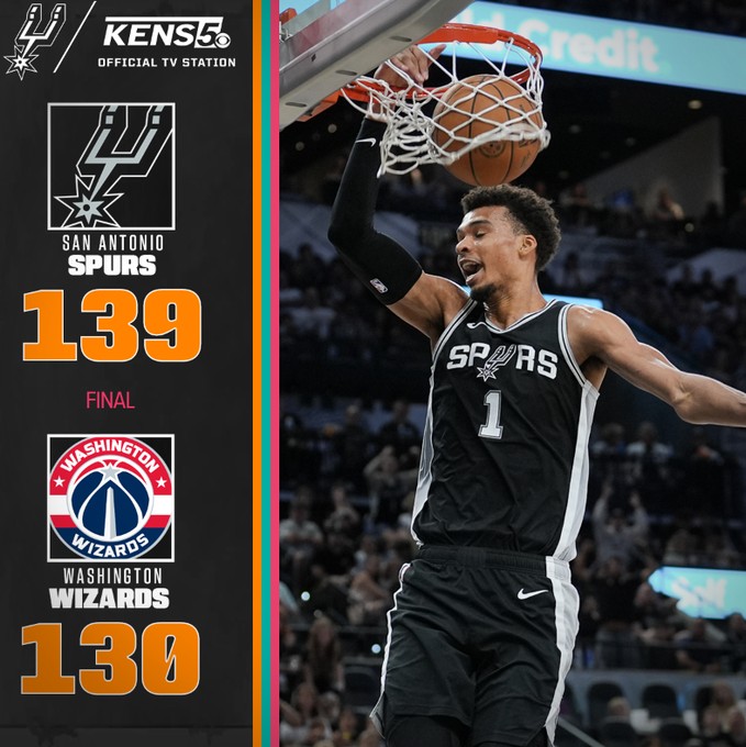- Spurs vs. Wizards: Spurs behaalden een overwinning van 139-130.