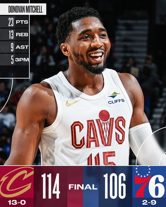 - Cavaliers vs. 76ers: Cavaliers bleven ongeslagen met een overwinning van 114-106.