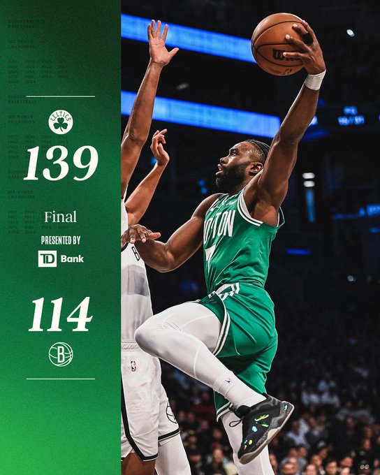 - Celtics vs. Nets: Celtics versloegen de Nets met 139-114.