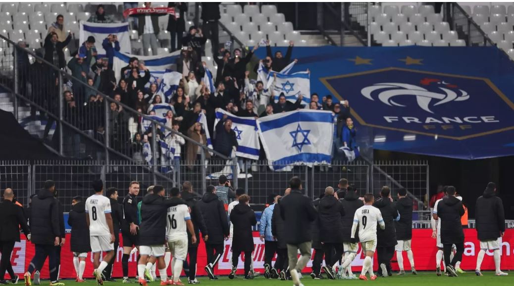 Israëlische fans veroorzaakten ongeregeldheden op de tribunes en vielen Franse fans aan voor de ogen van de Franse president, die in het stadion aanwezig was.