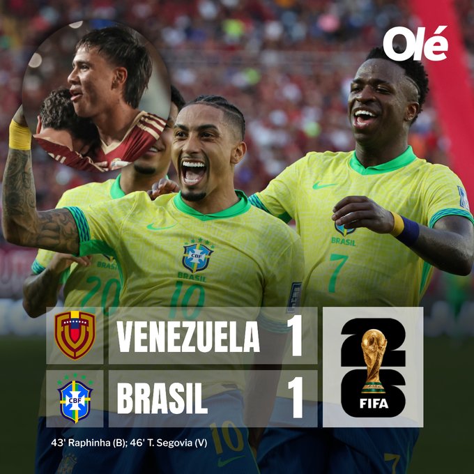 Tijdens de WK-kwalificatiewedstrijd in Venezuela miste Vinicius Junior een cruciale penalty, waardoor Brazilië met 1-1 gelijk speelde. Vinicius, die nog moet scoren in de kwalificaties, zag zijn schot gestopt worden door doelman Rafael Romo. Raphinha opende de score voor Brazilië met een vrije trap in de 43e minuut, maar Telasco Segovia maakte snel gelijk in de 46e minuut. Ondanks enkele kansen en een numeriek voordeel na een rode kaart voor Venezuela, kon Brazilië niet winnen. Na het gelijkspel staat Brazilië derde in de ranglijst met 17 punten uit 11 wedstrijden.