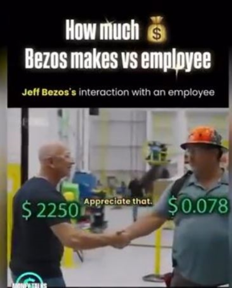 Contrasterend hiermee is iemand als Jeff Bezos, wiens vermogen groeit door de waarde van Amazon, los van directe tijdsinvesteringen.